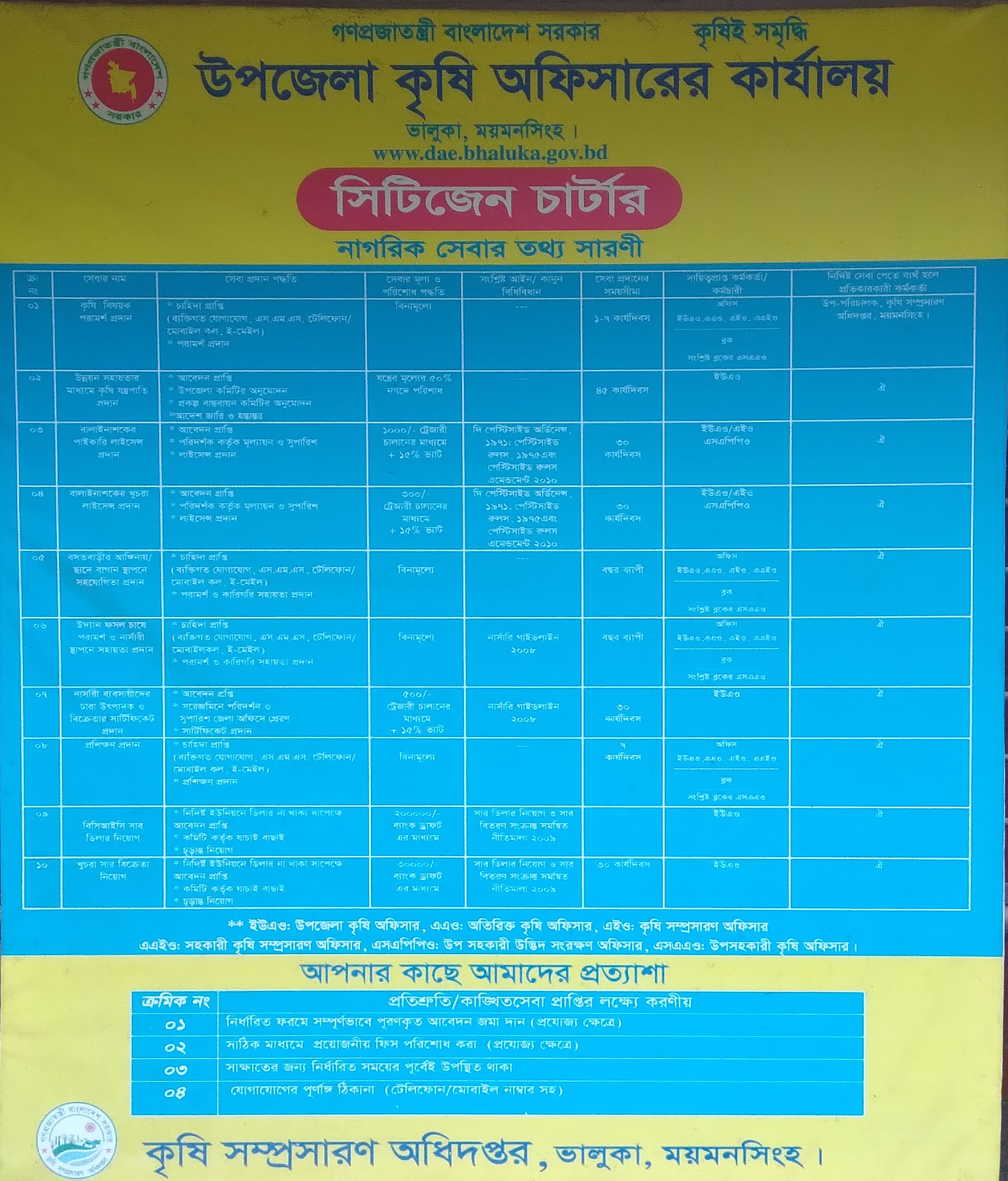 ০১। কৃষি সম্প্রসারণ অধিদপ্তর এর সিটিজেন চার্টারঃ